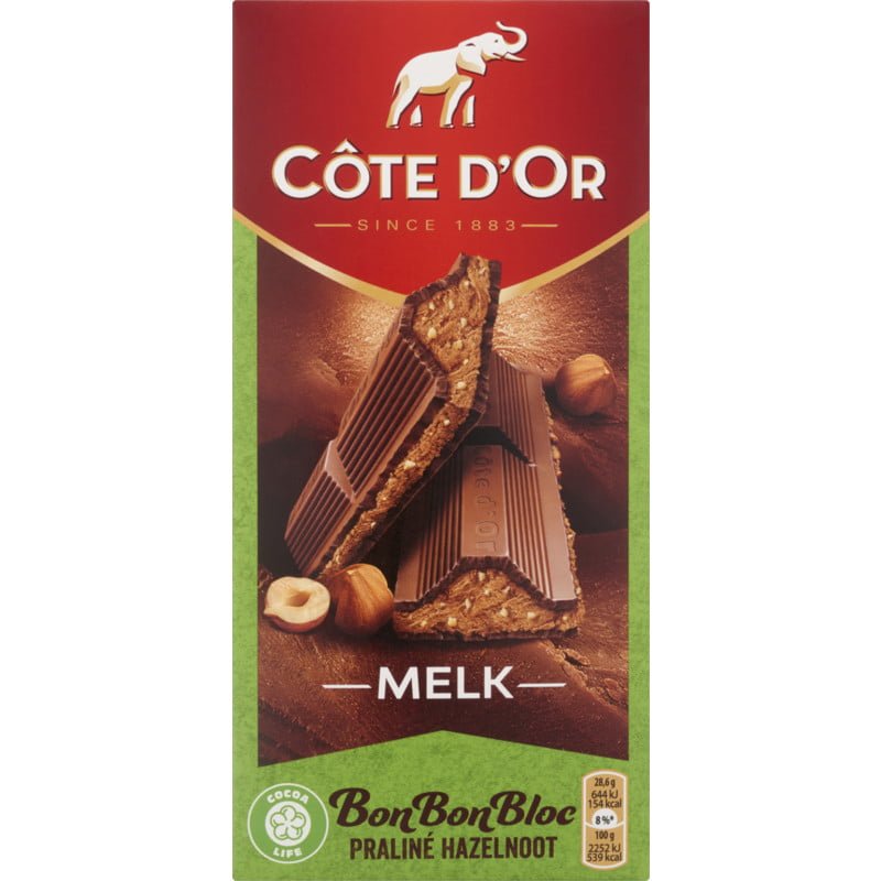 - Cote dor melkchocolade met een zachte pralinevulling en stukjes hazelnoot